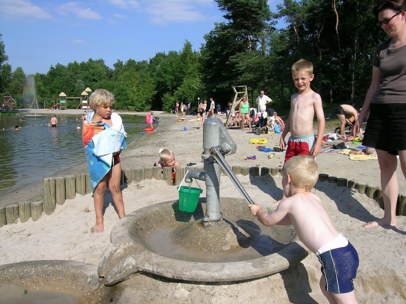 - Swimming lake with sandy beach for water fun