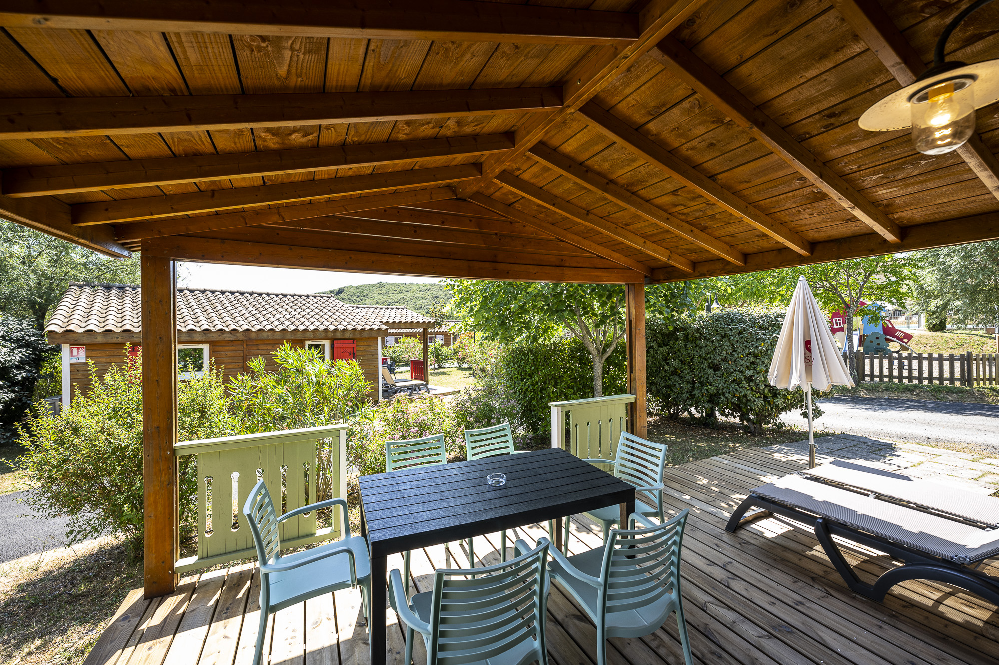 During your stay, enjoy Domaine's heated swimming pool at any time of day. A large pool is available for swimming, while children can have fun in the paddling pool with a small slide. Around the pool is a large solarium with deckchairs. Here you can enjoy the sunny days typical of the Ardèche while enjoying a breathtaking view of the surrounding countryside.