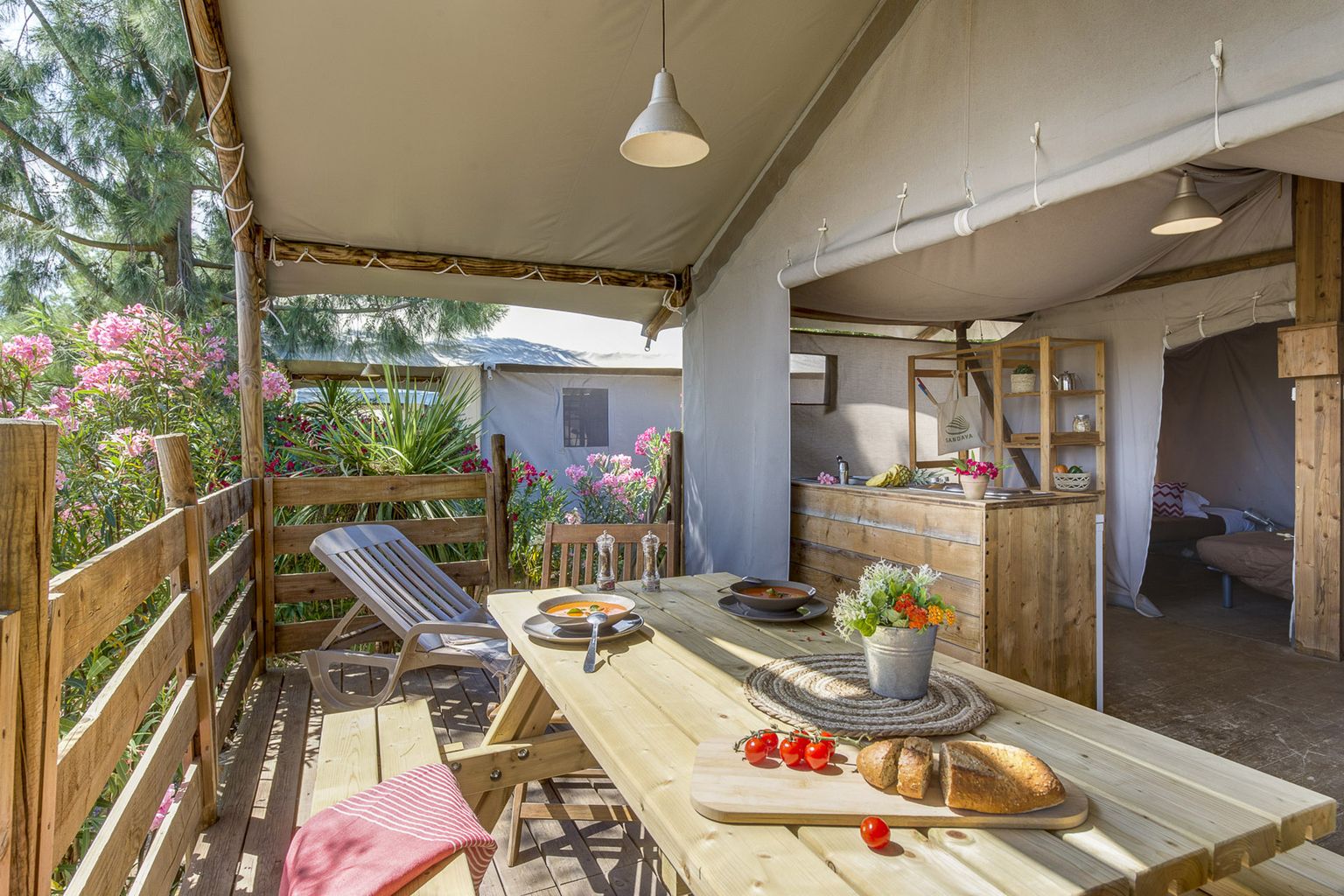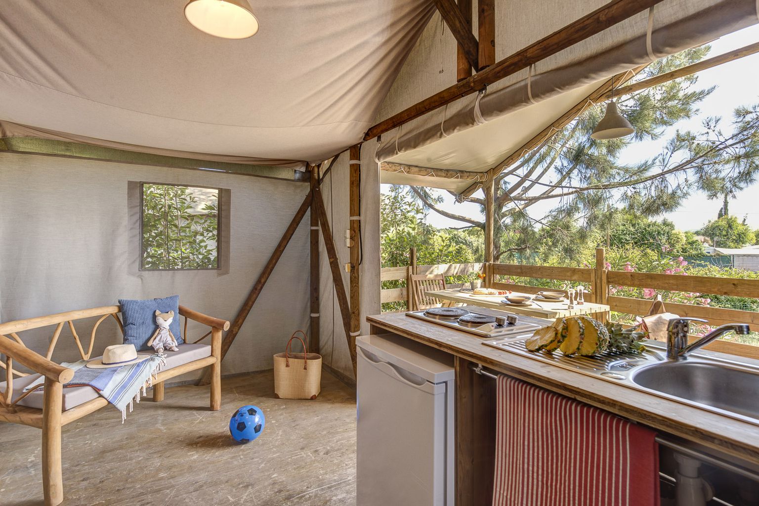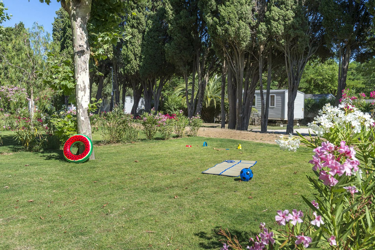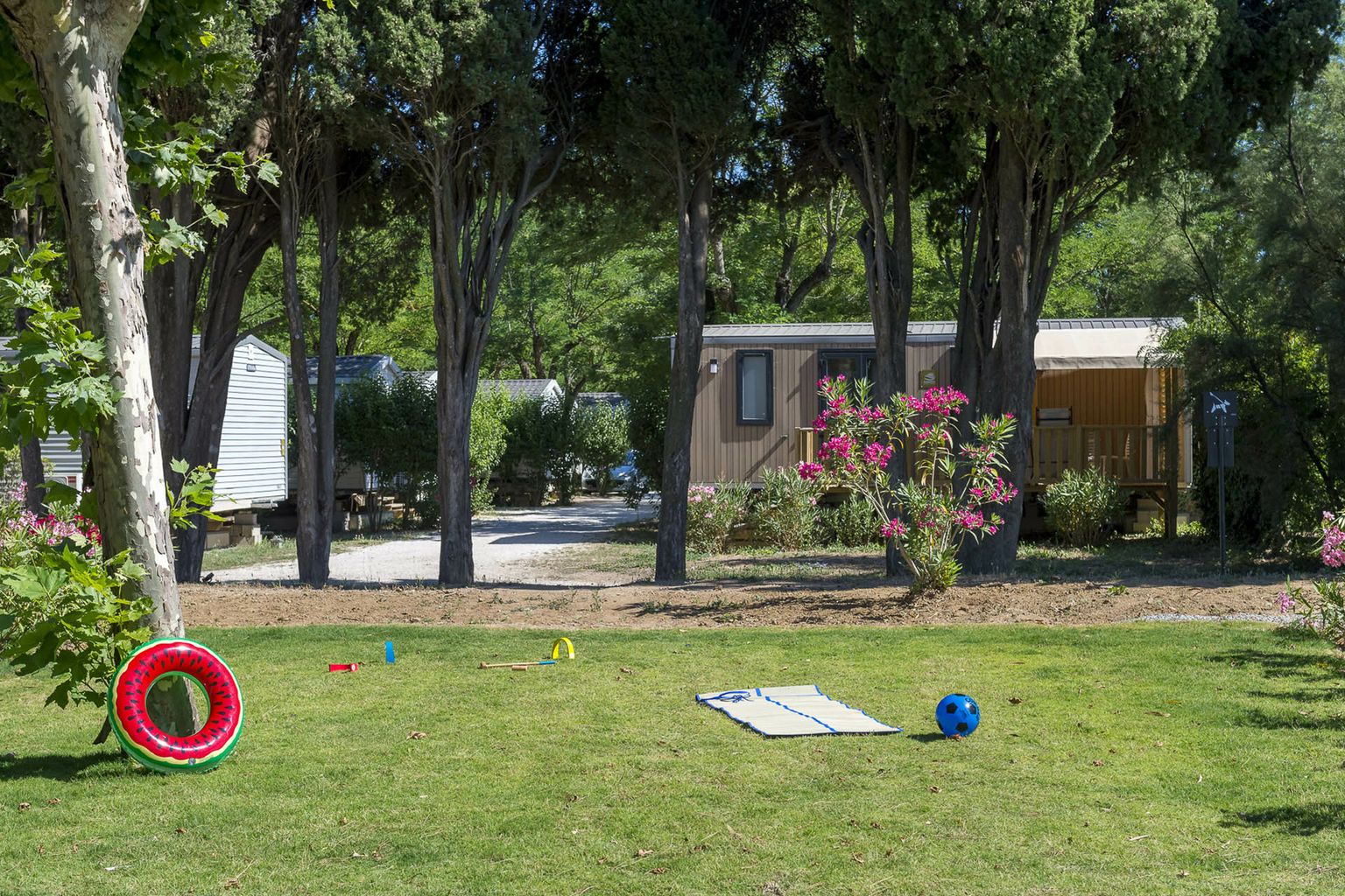 Luxury camping lovers are treated to a large selection of first-rate facilities at Riviera d'Azur. There are three different clubs for kids of all ages to enjoy while their parents unwind with a massage or sunbathing. The high-season (July & August), evening events are held regularly and include cabarets, foam parties and themed dining events.
