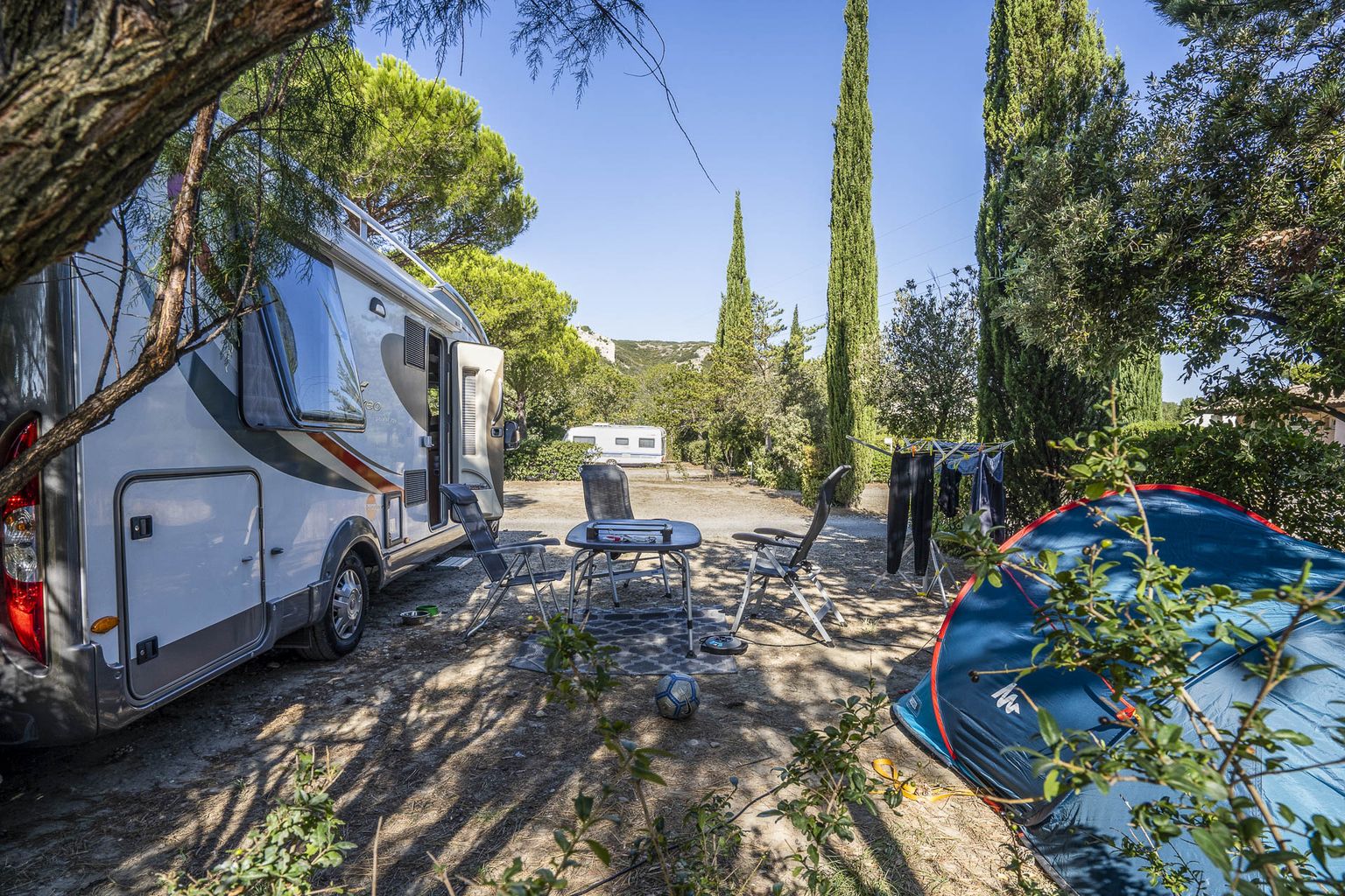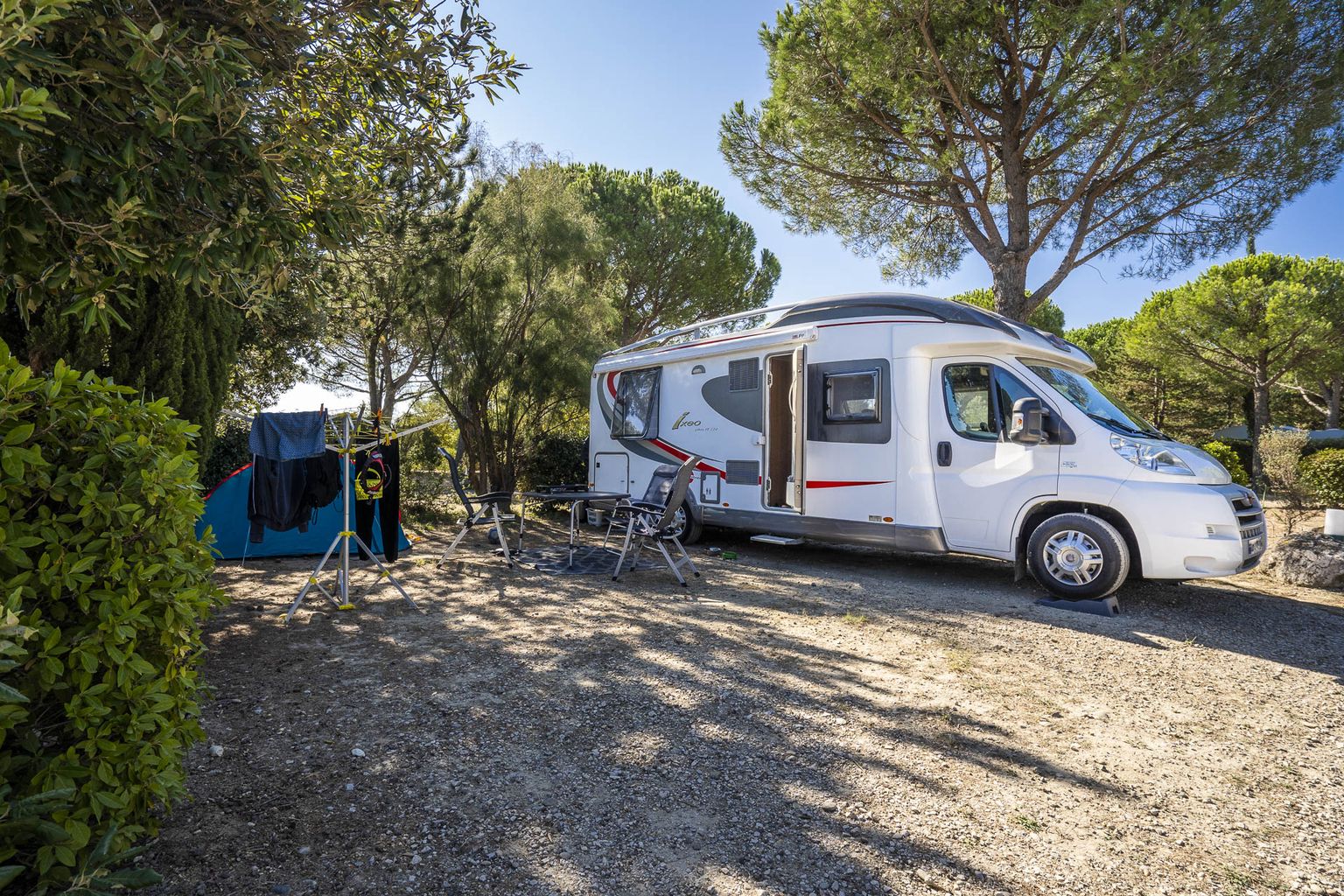 As one of the top campsites in the Rhone Valley, you’ll find all the regular camping holiday amenities, including a snack bar for eat in or take away, a bar for the grownups, a restaurant, bike rental, and a bouncy castle. There’s also a badminton court, basketball, mini golf, boules, a games room, table tennis, kids’ play area and pet showers. The kid’s club offers organized activities.